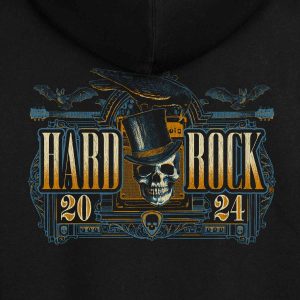 Halloween Vintage Skeleton Zip Up Hoodie Elevate your hoodie game with our new, limited edition Halloween Vintage Skeleton Zip Up Hoodie. Featuring a skeleton with a top hat design and vintage Hard Rock letterings, it is perfect for Halloween or just because. Plus, it’s a zip-up hoodie style, making it perfect to wear from morning…