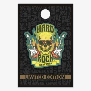 The Hard Rock Online Exclusive Collectible New York Tee Collector Pin captures the everyday hustle in iconic detail. Featuring a determined team member gripping a full box of Hard Rock shirts in one hand and lifting a tee in the other, this gold-accented design sets the scene with a bold sunburst and the official Hard…
