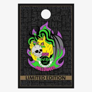 Bring your collection to life with the Hard Rock Limited Edition Purple Flame Anime Girl 2025 Pin. Designed for the 2025 Halloween season at Hard Rock Cafe Orlando, this anime-inspired pin features a fierce character with vivid green-and-black hair, detailed bat wings, and a sly grin as she holds a skull. Striking purple and green…