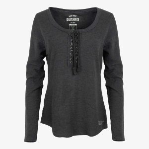 Guitar Company Lace Up Skull Thermal in Black with Skull Design Get cozy in your new lace-up thermal tee: where function meets fashion. This is the perfect layer under a jacket or under your favorite Hard Rock tee. Featuring a rib neck trim, crew neck, and a self-applique lace skull graphic in the back. Recommend…