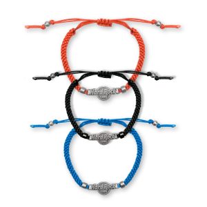 Red Braided Friendship Bracelet This beautifully braided Hard Rock logo friendship bracelet features easy adjustable pull-string closure and lightweight zinc alloy Hard Rock logo charm and beads. Length extends 7in-10in to fit around most size wrists.