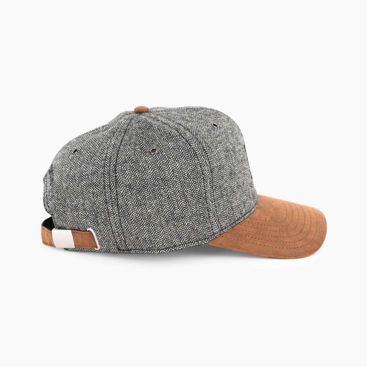 Black Herringbone Hat with Brown Visor Refine your style with the black herringbone hat featuring a brown “leather” PU visor with an adjustable strap. This hat seamlessly blends classic and contemporary elements showcasing a sophisticated herringbone pattern in timeless black.Care Instructions: Hand wash with mild soap recommended. Do not bleach. Air dry.