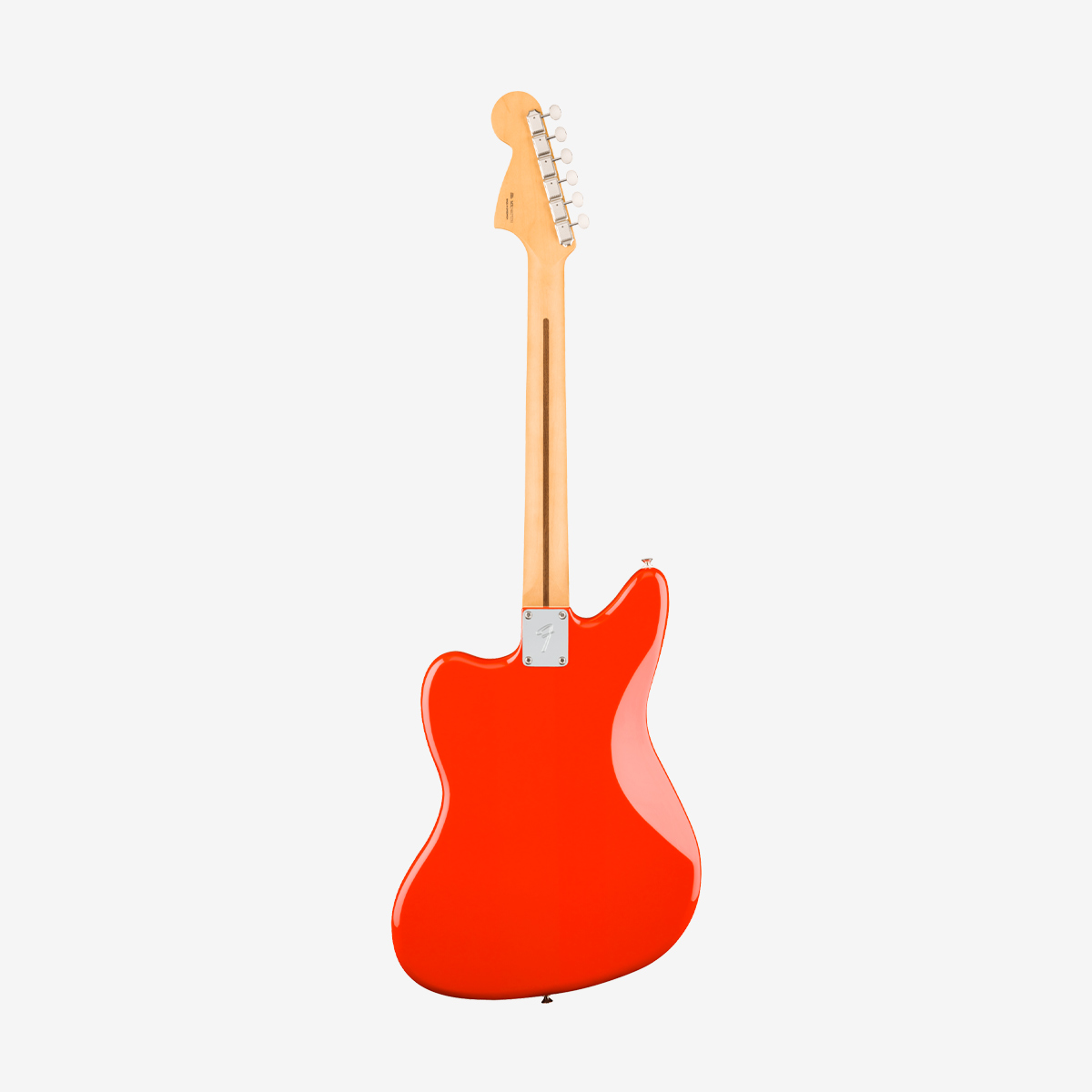 Fender Player II Jaguar Electic Guitar Coral Red Step into the spotlight with the Fender Player II Jaguar, a stage-ready guitar that blends iconic Fender sound with contemporary updates. This guitar features a contoured alder body and a modern "C" neck profile with a silky satin urethane finish, ensuring fast and fluid playability. The 9.5" radius rosewood fingerboard with rolled edges and 22 medium jumbo frets provide smooth playability. Equipped with Player Series Alnico V (Bridge) and Alnico II (Neck) single-coil Jaguar pickups, it delivers a wide range of tonal options. The Jaguar bridge with Mustang saddles and vintage-style floating tremolo tailpiece ensures precise tuning stability. ClassicGear™ tuning machines offer reliable performance, making this guitar perfect for crafting your own sound.