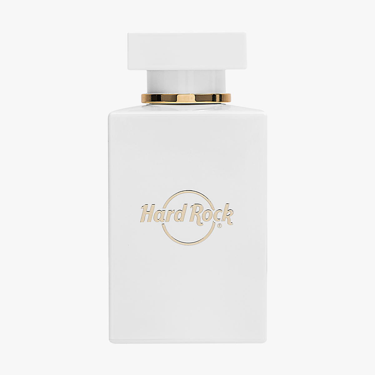 Hard Rock Women’s Fragrance is a warm, floral, and amber scent in a chic lacquered white and gold bottle.