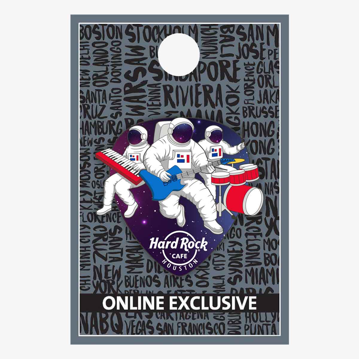 Launch your collection into orbit with the Online Exclusive Hard Rock Cafe Houston Pin! Featuring bold hard enamel, black metal plating, and a Cubic Zirconia accent, this exclusive 2025 release blends space adventure with signature Hard Rock style. Limited to just 150 pieces!