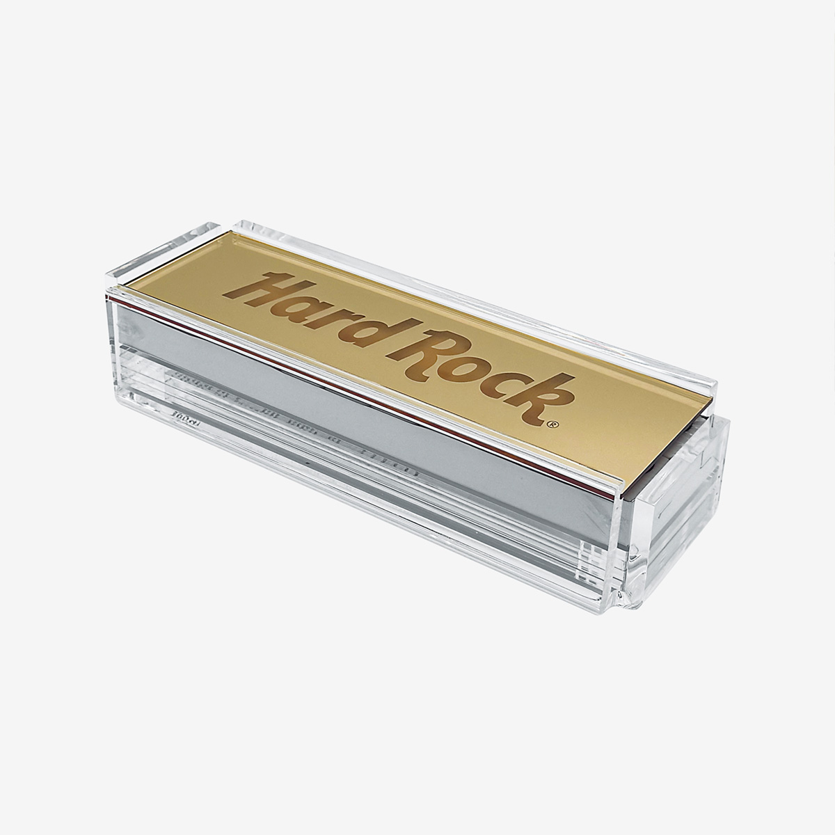 Classic game, high-end style. This rummy tile set features a flame-polished acrylic case with 106 tiles, including two jokers, all in a sleek gold mirror design.